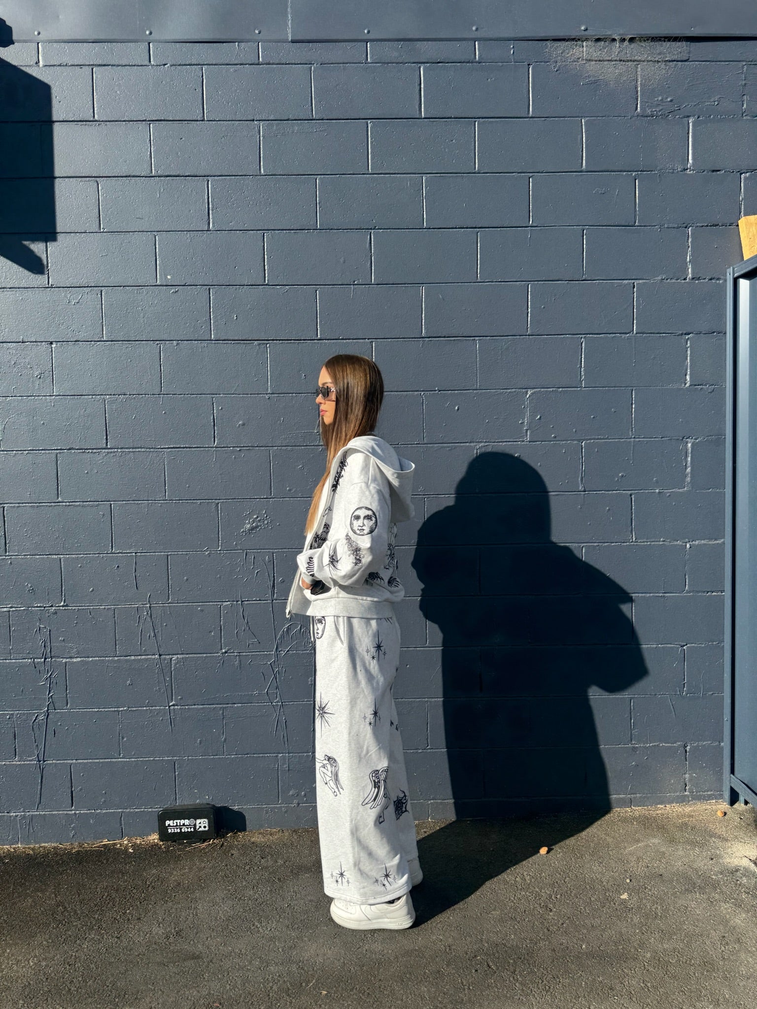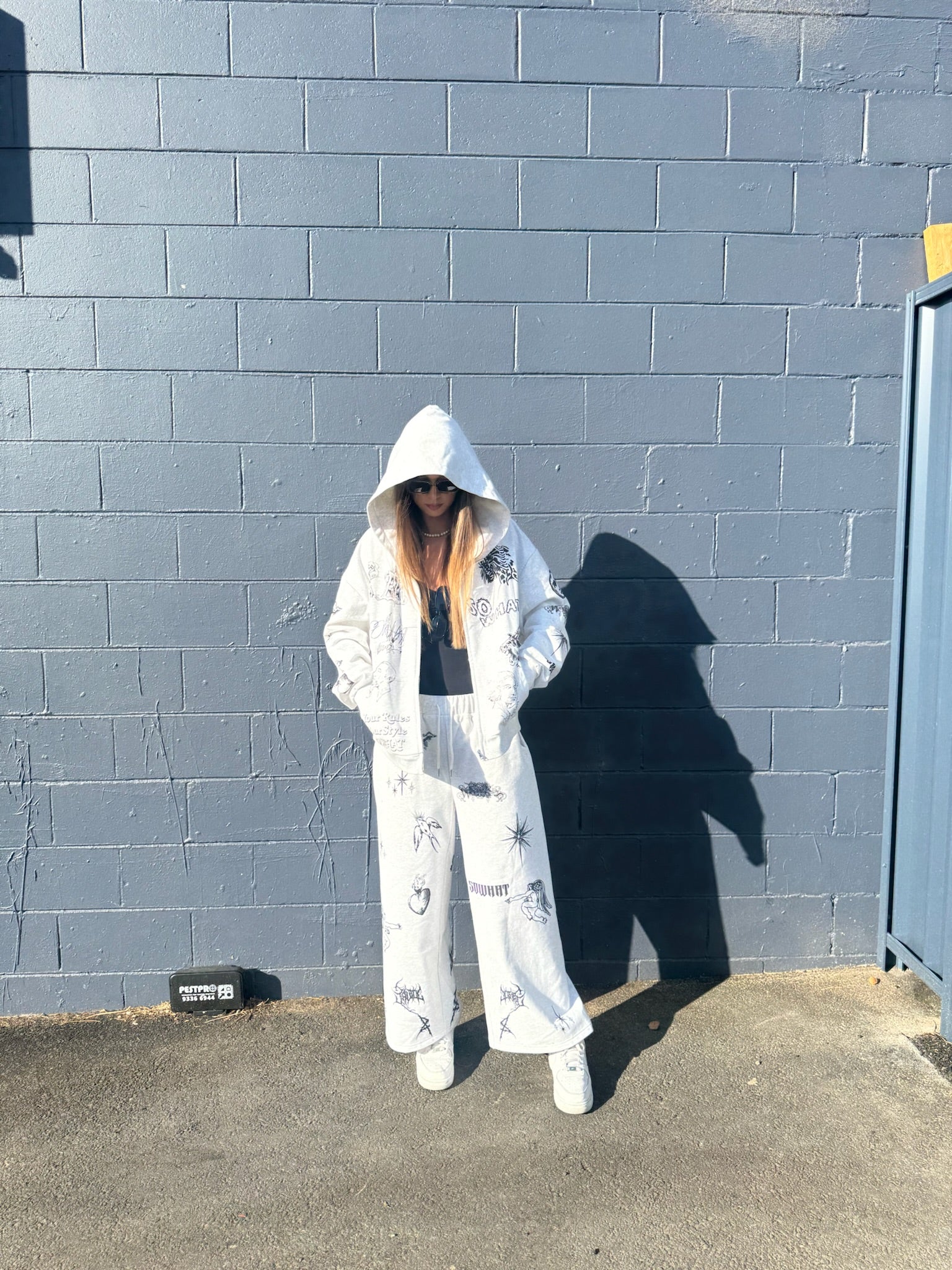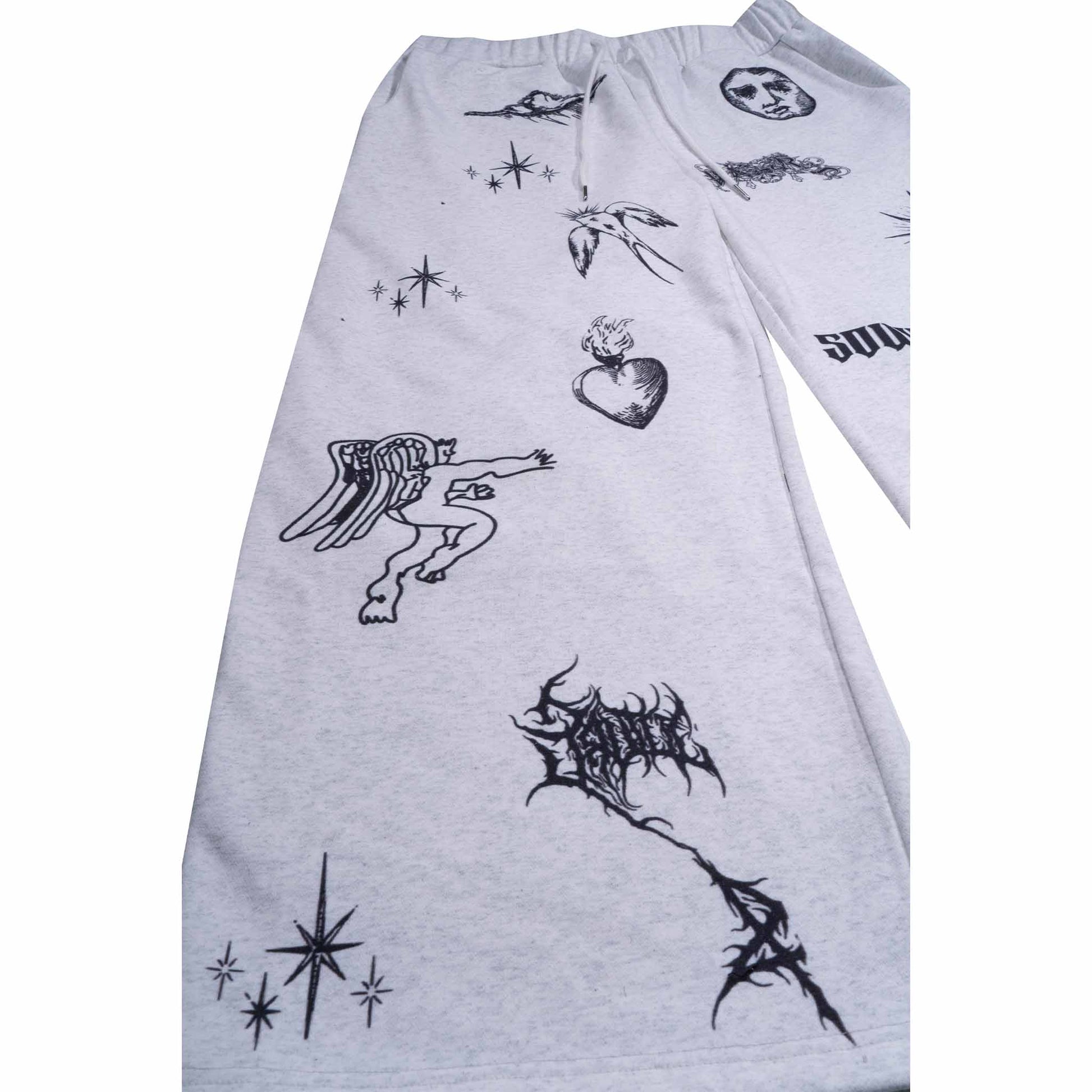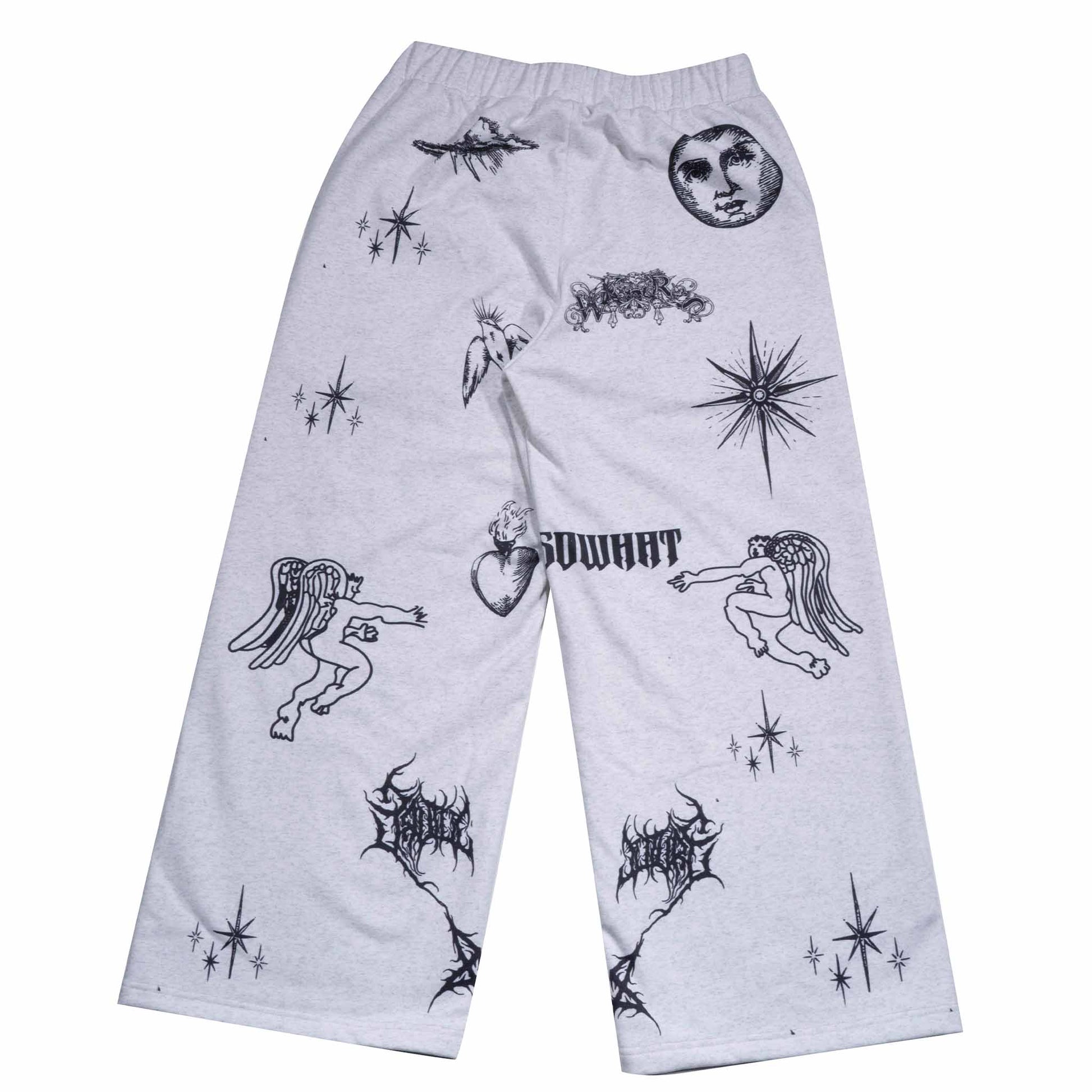 This garment uses full-width positioning digital printing technology. The carefully designed multi-pattern combination is accurately presented on the entire garment, creating a unique and complex visual effect. The high-precision printing process ensures that each pattern is colorful and rich in details, bringing you a unique fashion experience. Whether it is daily wear or special occasions, it can show your personality and taste. Whether it is daily leisure or fashion matching, it can bring you a unique wearing experience. Different elements are matched to form patterns that are more in line with their own brand culture, making the pants body more impactful and beautiful. The large straight sweatpants are versatile and casual, and the drooping feeling makes the streamline of the pants body more beautiful.
