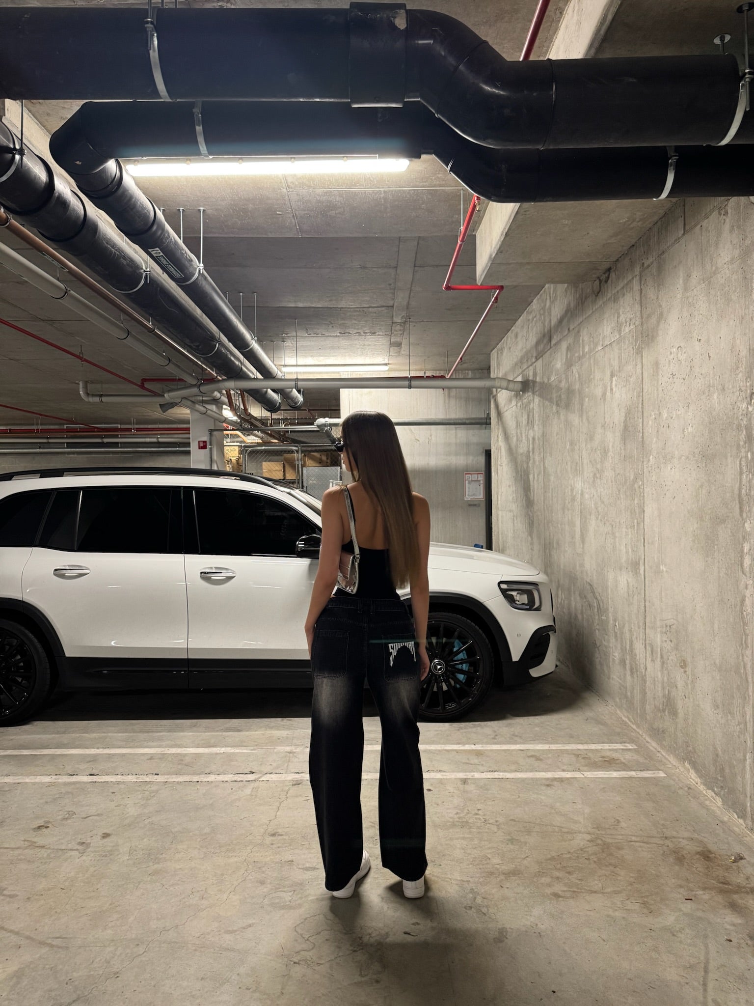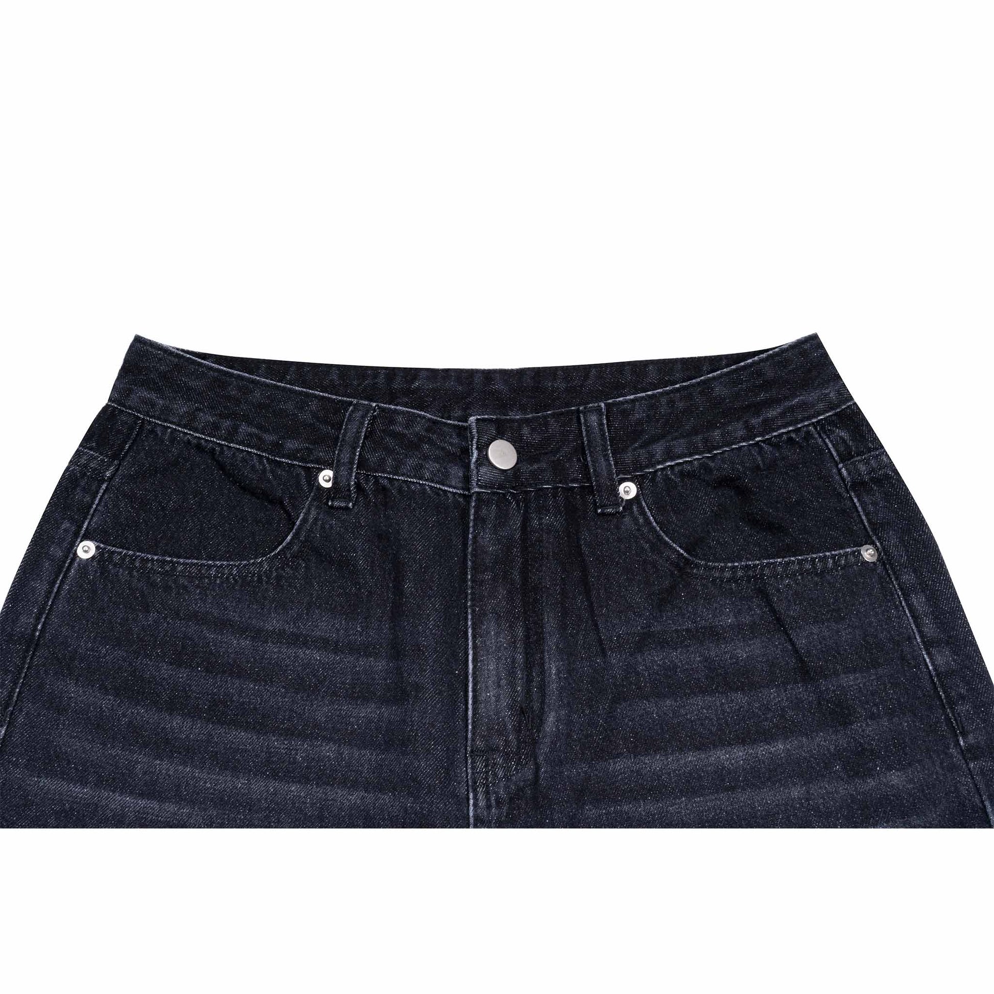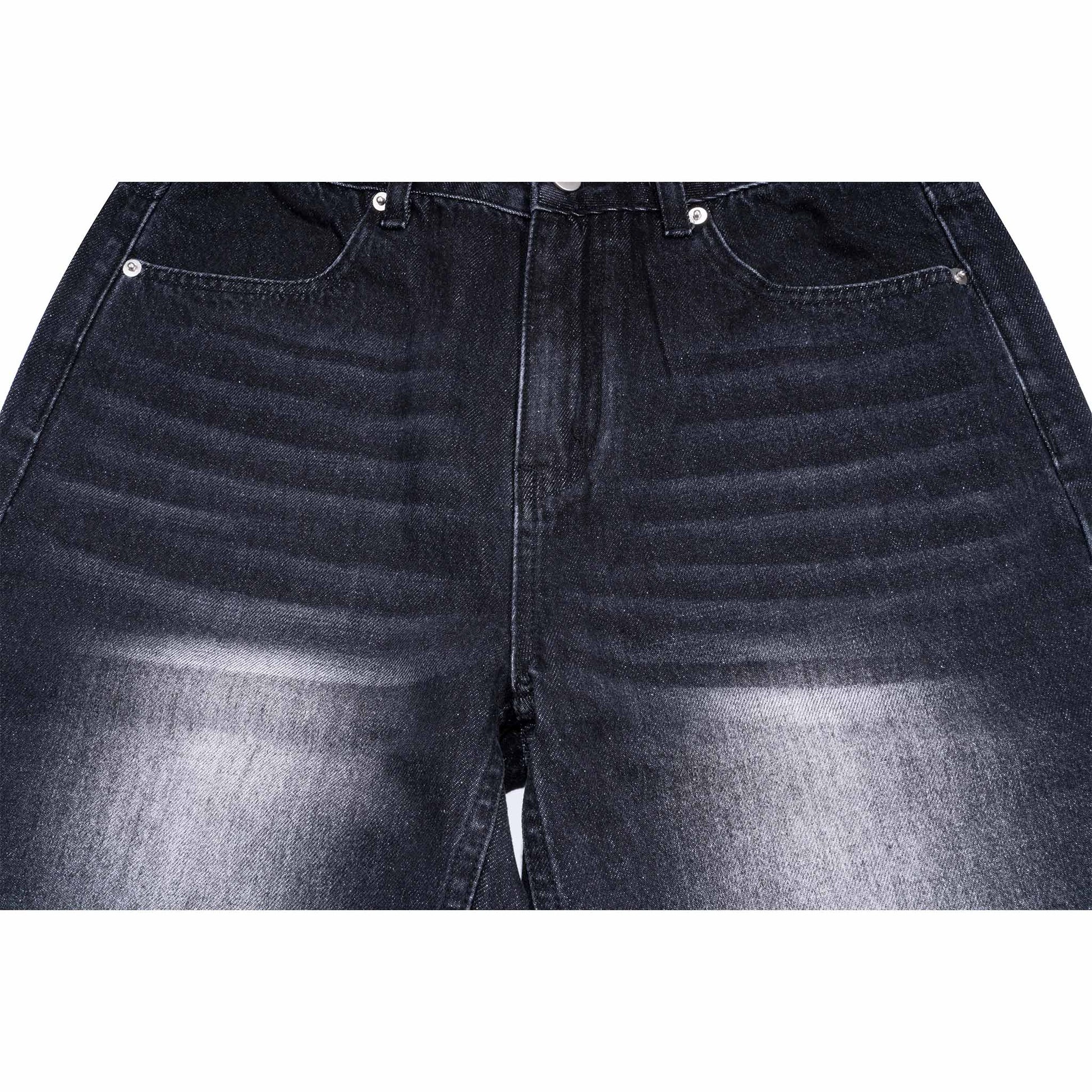 This large straight-leg jeans is embellished with the pattern based on our brand's iconic LOGO. The front pants use inkjet painting technology to create the lines of cat whiskers and the process of spraying white areas. The original black of the denim is made into black and white with a breathable fashion beauty, making the denim itself more trendy and avant-garde; especially suitable for people who need basic styles to match different scenes.