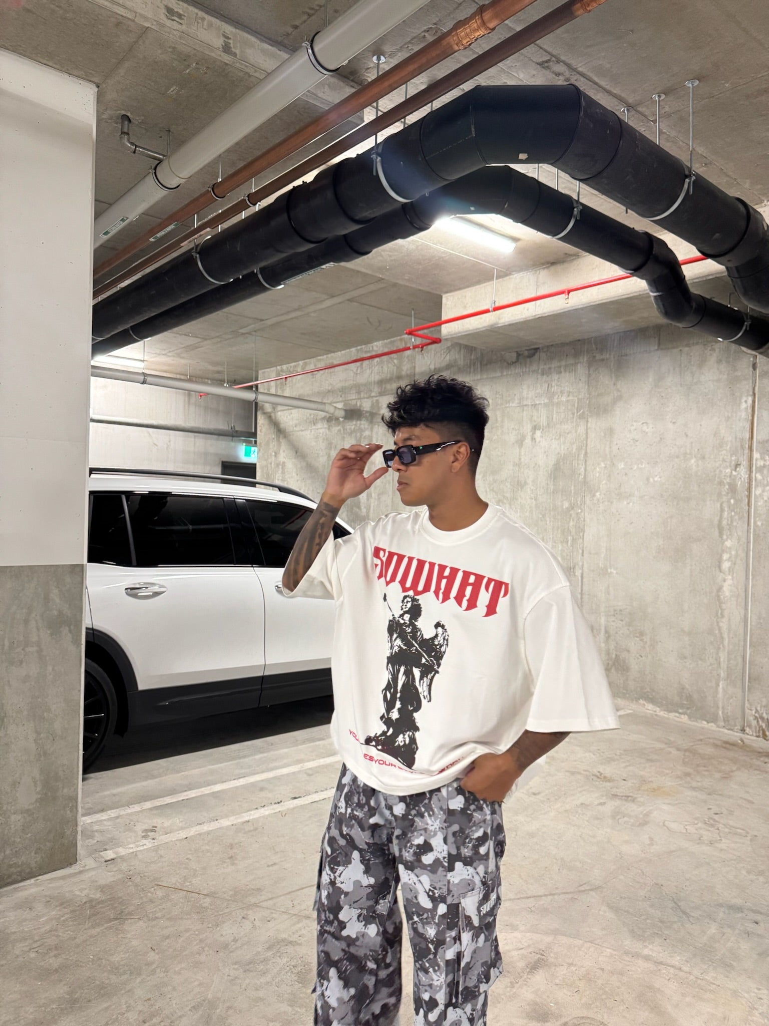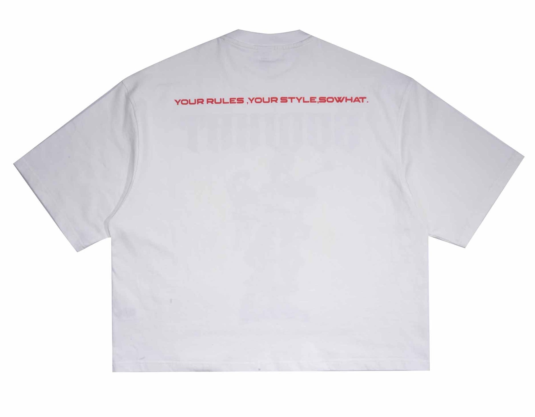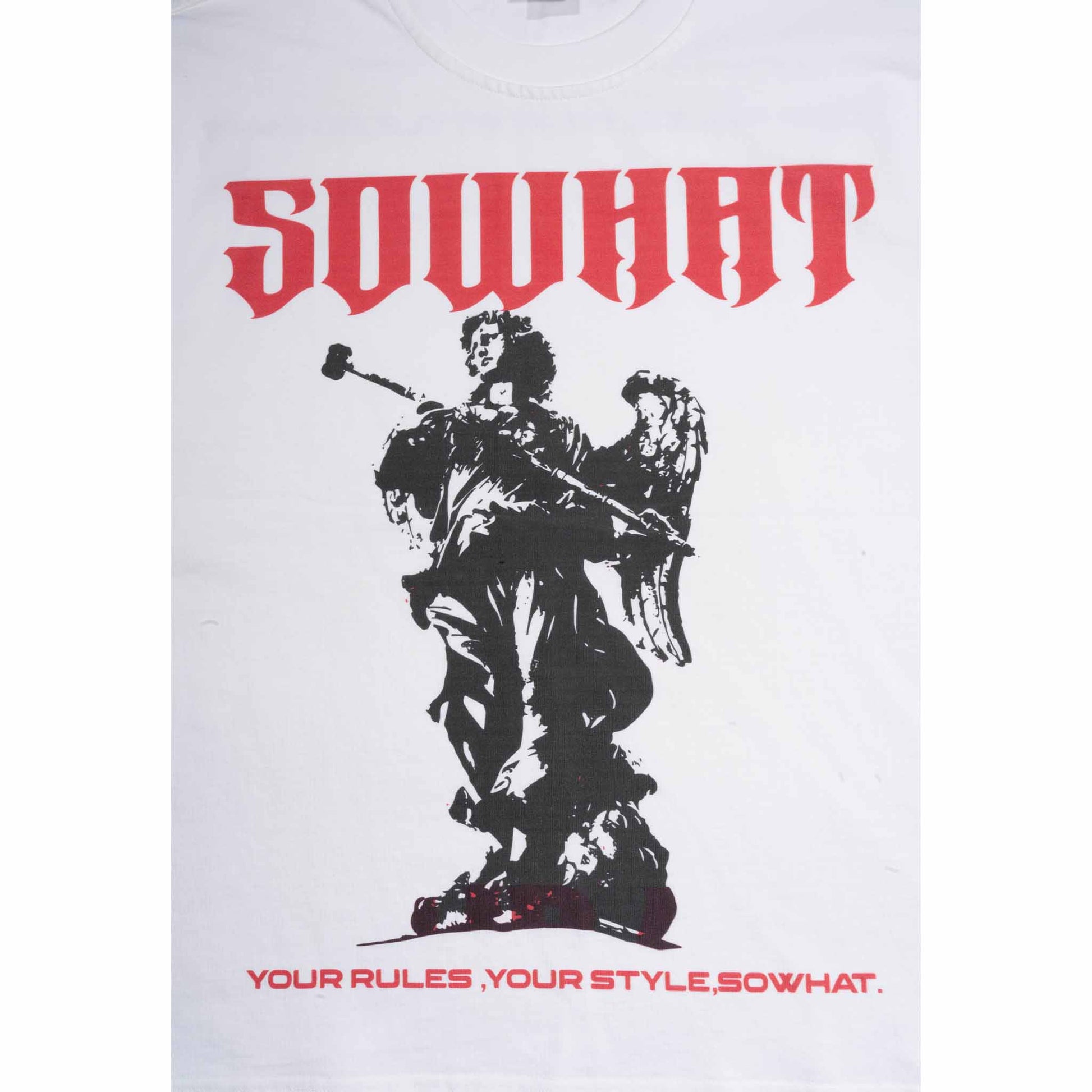 The "staff" intuitively reflects the state of the angel holding a wooden stick, which symbolizes the power of protection. The "watchman" highlights the action of the angel turning his head and looking away, indicating that he is always vigilant. The red font color is more eye-catching, and he shoulders the heavy responsibility of looking out and guarding, guarding the surroundings in an all-round way, not letting go of any corner. Short and wide T-shirts are more suitable for daily life and are more fashionable.